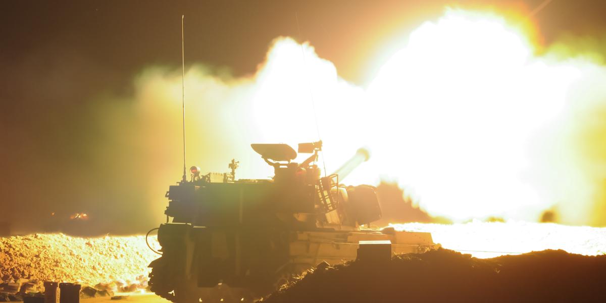 Image: shay shmueli/shutterstock.com: south Israel 17 july 2014, artillery bombing Gaza strip.